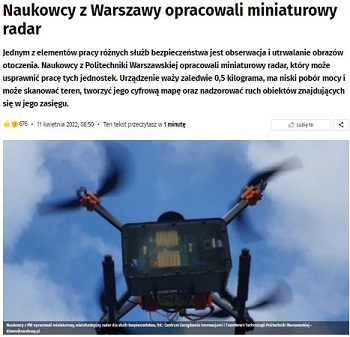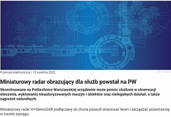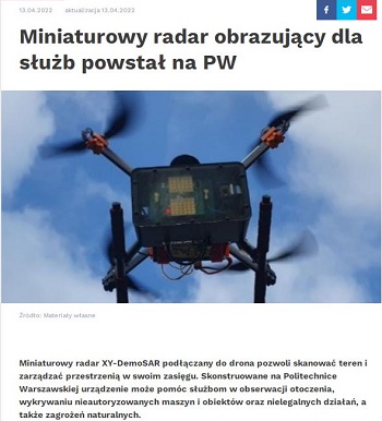 The Science in Poland information service in cooperation with the Ministry of Education and Science has published an article on XY-DemoSAR. The radar has been found to be perfectly suitable for observing the surroundings, detecting unauthorized machines and objects and illegal activities as well as natural hazards.